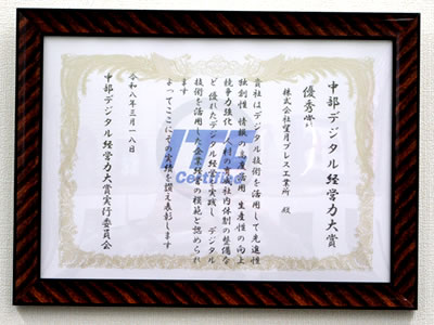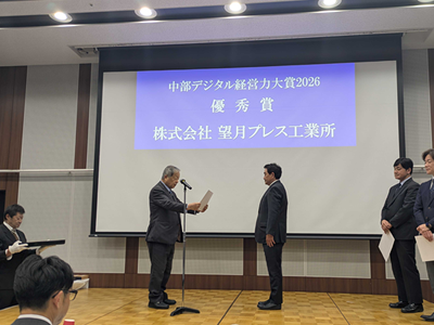 弊社は、『中部デジタル経営力大賞2026』においてプレス管理のネットワーク化などのIoT技術が評価され優秀賞を受賞しました。